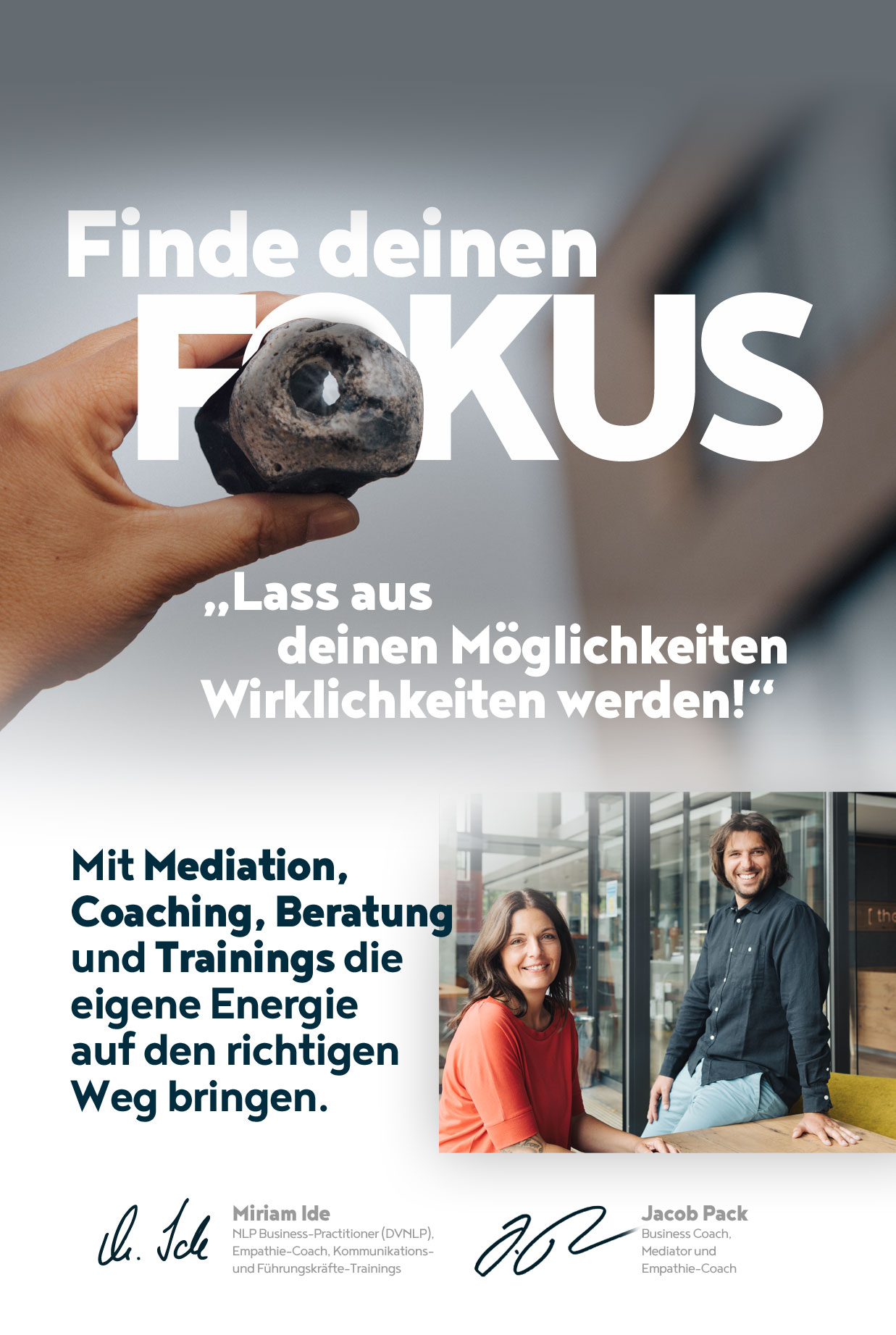 Dabei steht das Format – „was genau für ein Produkt benötige ich eigentlich für mein Anliegen? – in der zweiten Reihe. Jedes Coaching, jede Beratung und Mediation ist individuell und wird auf die jeweiligen Wünsche zugeschnitten.